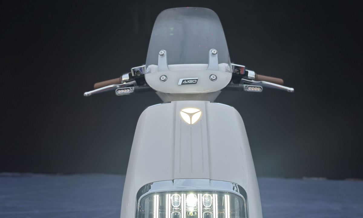 Tổng thể xe đi theo lối scooter cổ điển đậm chất châu Âu. Điểm nhấn đặc biệt là phần kính chắn gió phía trước cao khoảng 25cm. Tạo nên một tổng thể xe vừa nữ tính, và rất thời trang. Giúp thỏa mãn mong muốn sở hữu một mẫu xe độc lạ, không đụng hàng.