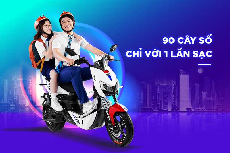 Quãng đường di chuyển lên đến 90km với 2 chế độ lái an toàn cho người dùng: chế độ Eco - Tiết Kiệm Điện Năng: với vận tốc trung bình là 38km/h và chế độ Power - Tăng Tốc Mạnh Mẽ: vận tốc trung bình là 50km/h