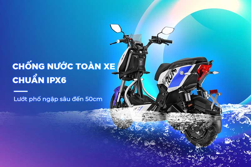 Ngoài ra, khung xe vô cùng chắc chắn bởi được sản xuất từ thép cán lạnh, trải qua quy trình 47 bước nghiêm ngặt, cho khả năng chịu tải lớn, chống ăn mòn tốt. Đặc biệt, X5 được trang bị hệ thống chống nước đạt chuẩn IPX6 toàn xe, vượt trội bởi khả năng đi qua những con đường ngập nước lên tới nửa mét một cách dễ dàng.