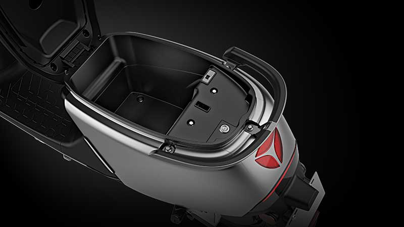 Bên dưới yên xe, cốp của YADEA G5 có dung tích lên đến 26 lít, đây là dung tích được xem là không có đối thủ trong phân khúc xe điện. Bạn có thể chứa vừa một chiếc balo hoặc 2 mũ bảo hiểm cùng nhiều vật dụng khác.