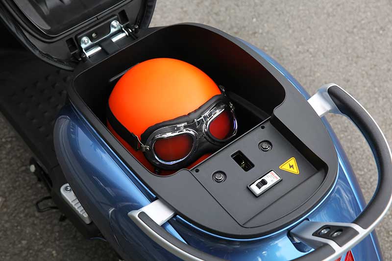Hộc chứa đồ và cốp rộng 18 lít tiện lợi cũng là ưu điểm của M6i. Với thể tích 18 lít, không chỉ riêng mũ bảo hiểm, người dùng còn có nhiều không gian để chứa các vật dụng cá nhân khác. Riêng phần hộc chứa đồ phía trước, sâu 150 mm có mép cong giúp đồ bên trong khó bị rơi ra ngoài, tiện lợi hơn với cổng sạc USB. Vậy nên khi điện thoại không may hết pin, các bạn trẻ sẽ nhanh chóng tìm chỗ sạc điện, để không gặp phải bất cứ gián đoạn, phiền hà nào. Móc treo đồ được thiết kế ẩn phía trước tăng tính linh hoạt tùy theo nhu cầu sử dụng, tiện lợi treo đồ.