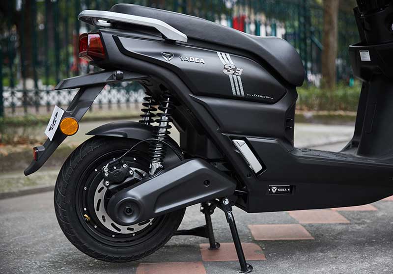 YADEA S3 trang bị hệ thống phanh đĩa trước sau, piston đối xứng. Mâm phanh lớn giúp giảm quãng đường phanh, tăng tính an toàn khi lái xe. Bên cạnh đó, hệ thống phanh với má phanh đối xứng giúp bạn an toàn hơn khi di chuyển, không bị tình trạng đảo, lắc tay lái và khóa bánh khi phanh xe.